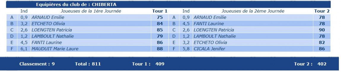 L'équipe de Chiberta, composée de Nathalie Lamboult, Evelyne Joly, Laurine Fanti, Patricia Loengten, Olivia Etcheto, Marie-Laure Mauduit, Laurence Lajoie-Meunier et Marine Joly , s'est maintenue en 1ère Division.