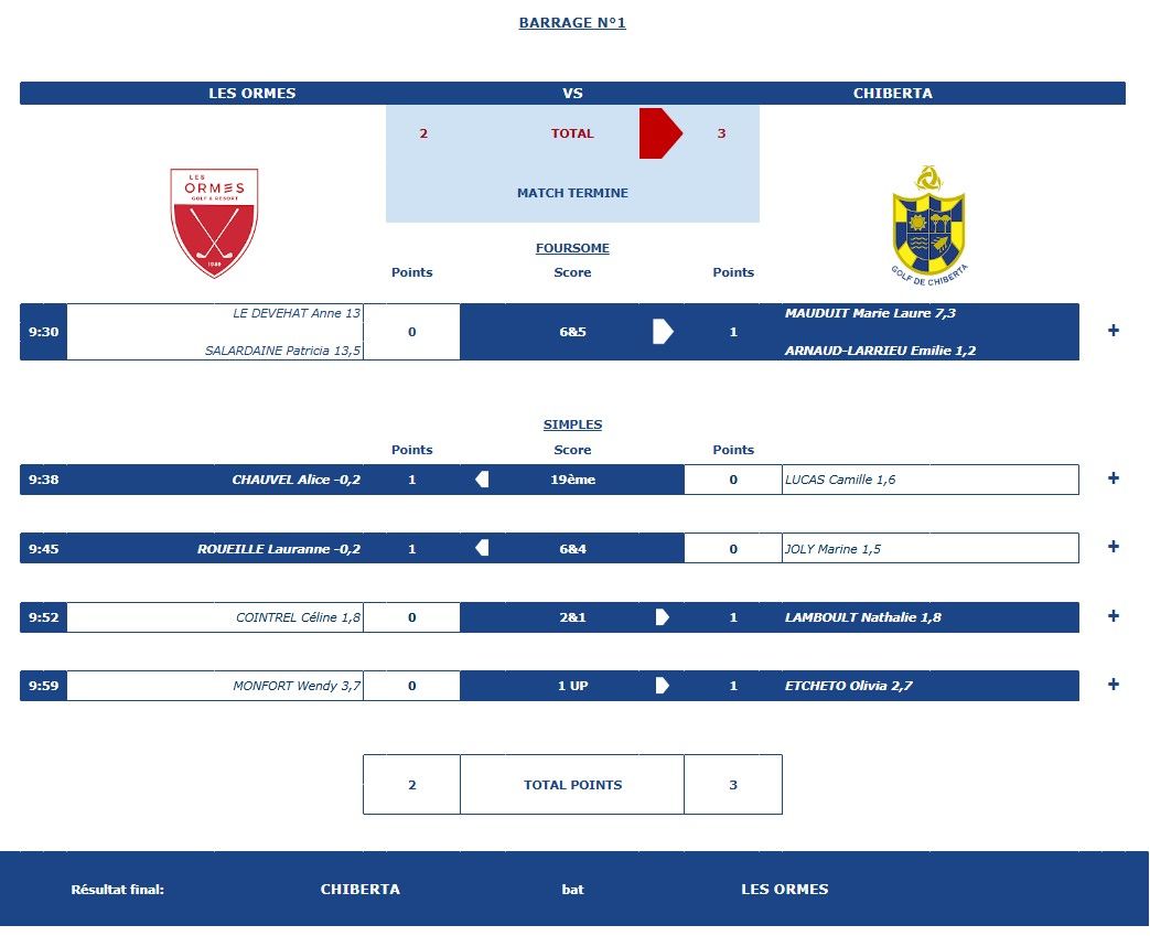 Bien lancées par une victoire en Foursome de Jenifer et Marie Laure, les simples iront en notre faveur avec les victoires d'Emilie, Olivia et l'égalité de Laurine.