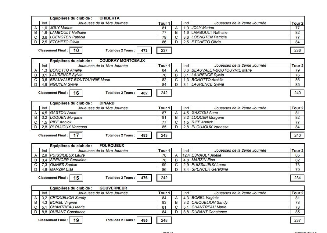 13èmes à l'issue des qualifications, nos Dames rencontreront le golf des Ormes, 12ème, pour un match de barrage significatif de maintien ou de descente.